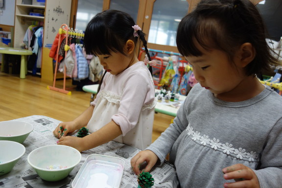 2025年12月23日 ひつじさんのクリスマスツリー 1号認定(ひつじ) その他 ひつじグループでは松ぼっくりを使って自分だけのクリスマスツリーを作りました。 筆を使い白や緑の色に塗っていきます。 ビーズや綿をつけてデコレーション♪ 綿は綿花からとった天然のものを使用しました。 自分だけの素敵なクリスマスツリーができました! 投稿ナビゲーション 本日のフレンズデー大掃除をしました☆ Recent articles最新の記事 本日のフレンズデー 大掃除をしました☆ ひつじさんのクリスマスツリー 本日のフレンズデー 本日のフレンズデー categoryカテゴリー 0歳児(ひよこ) 1号認定(ひつじ) 1歳児(うさぎ・らっこ) 2歳児(りす) 3歳児(ぱんだ) 4歳児(くま) 5歳児(きりん) おしらせ その他 フレンズデー 行事 log過去ログ 2025年12月 2025年11月 2025年10月 2025年9月 2025年8月 2025年7月 2025年6月 2025年5月 2025年4月 2025年3月 2025年2月 2025年1月 2024年12月 2024年11月 2024年10月 2024年9月 2024年8月 2024年7月 2024年6月 2024年5月 2024年4月 2024年3月 2024年2月 2024年1月 2023年12月 2023年11月 2023年10月 2023年9月 2023年8月 2023年7月 2023年6月 2023年5月 2023年4月 2023年3月 過去ブログはこちら 旧ブログページへ お電話でのお問い合わせ 0463-82-6226