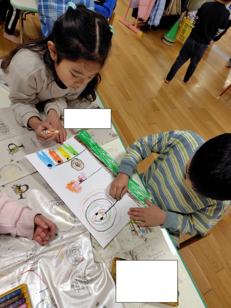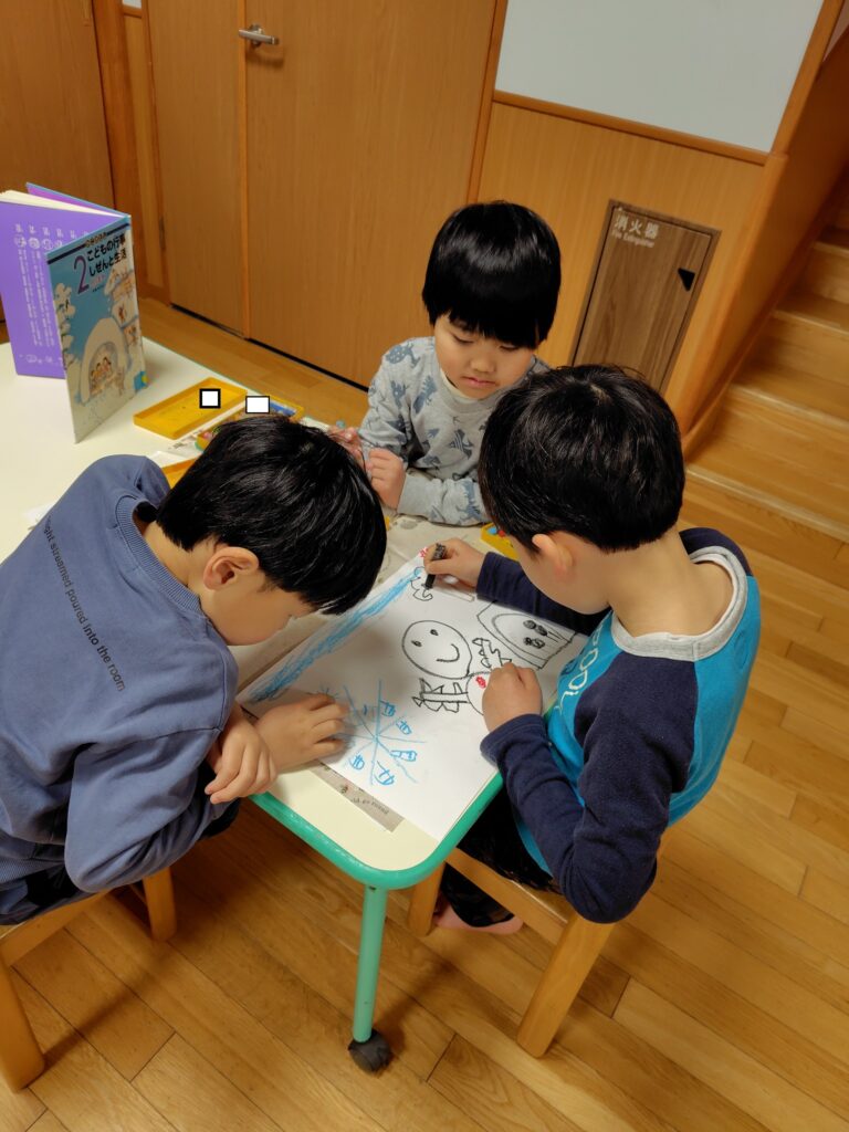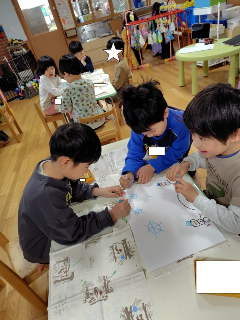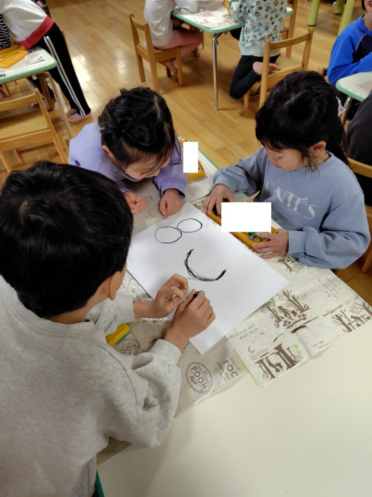 子供たちは完成していくことが楽しみなようで友だち同士との会話も弾んでいます。
