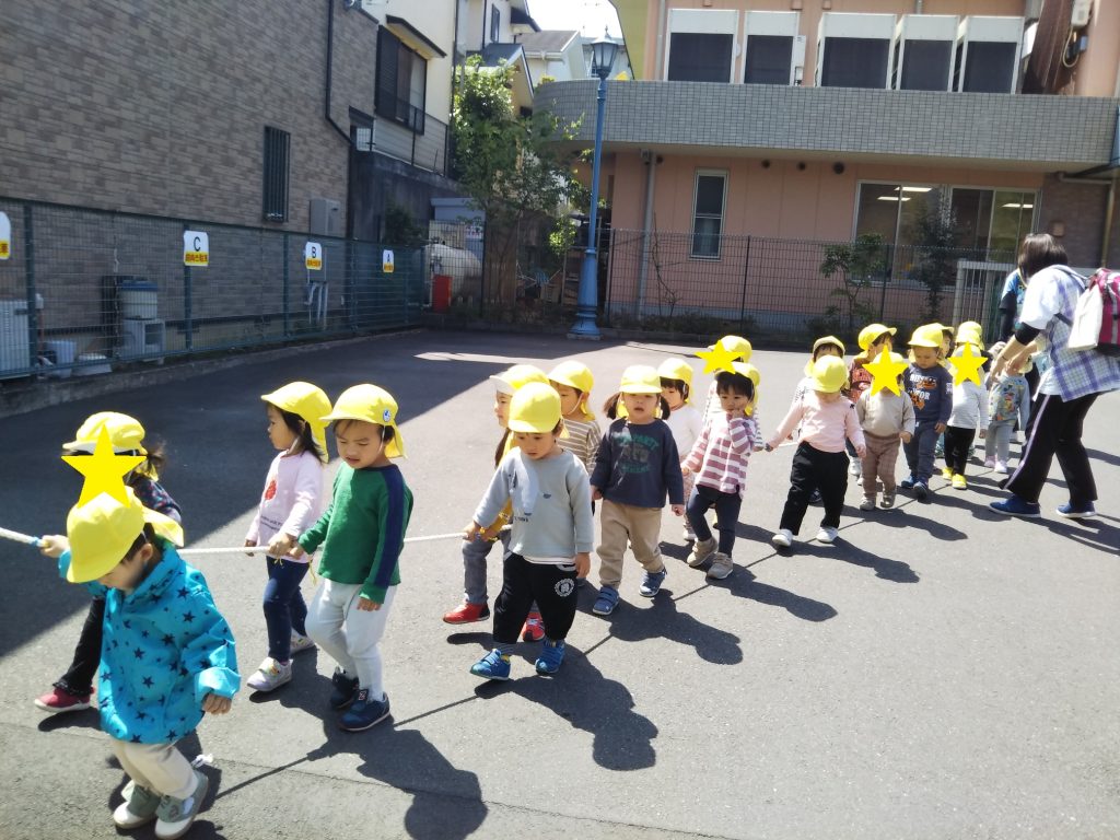 ひよこグループ(0歳児)は、先日初めて園内散策をしました。