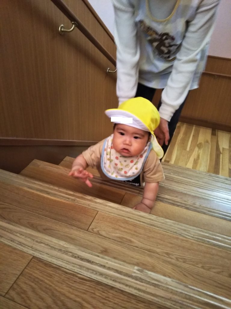 保育室に戻る時は、援助しながら階段を自分で登り、無事に保育室に到着。