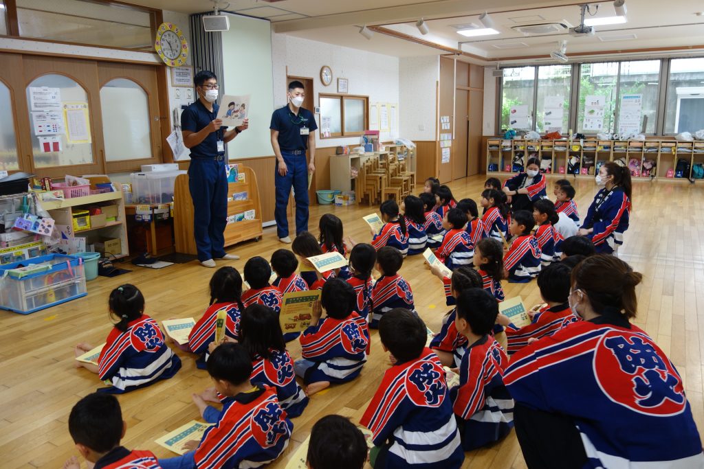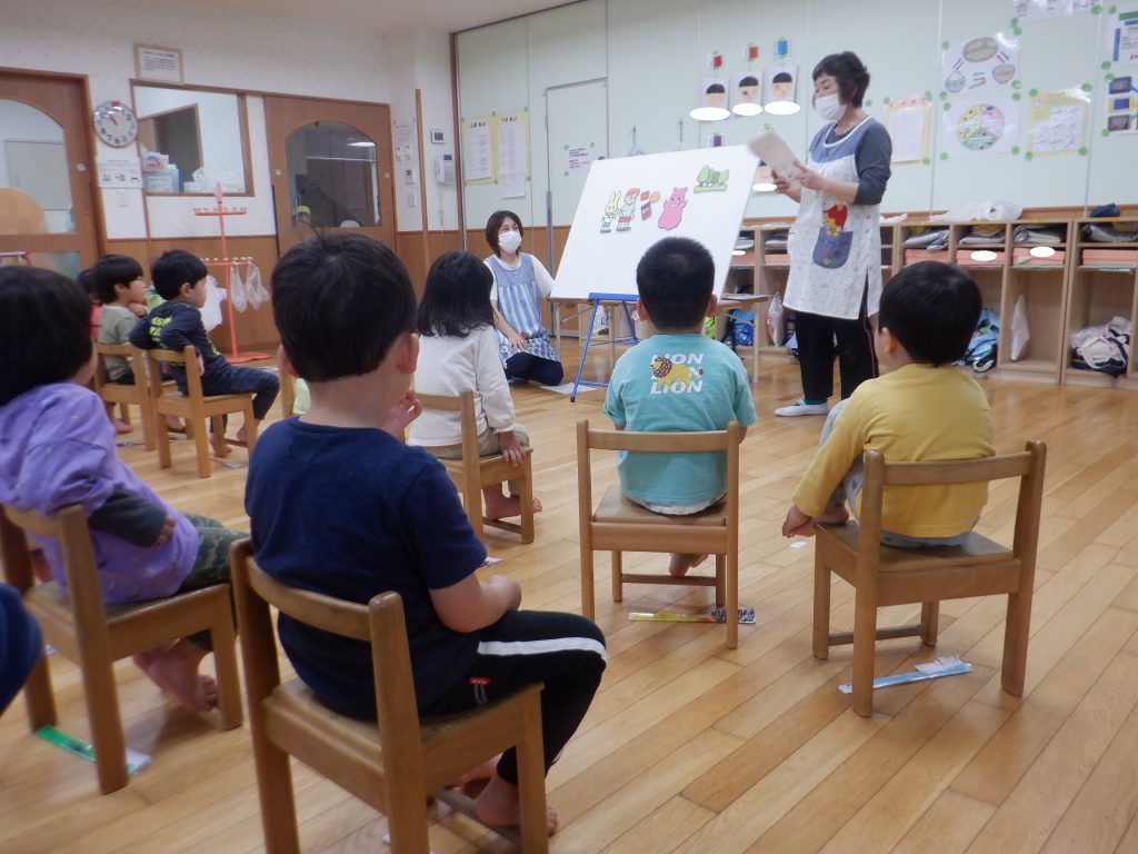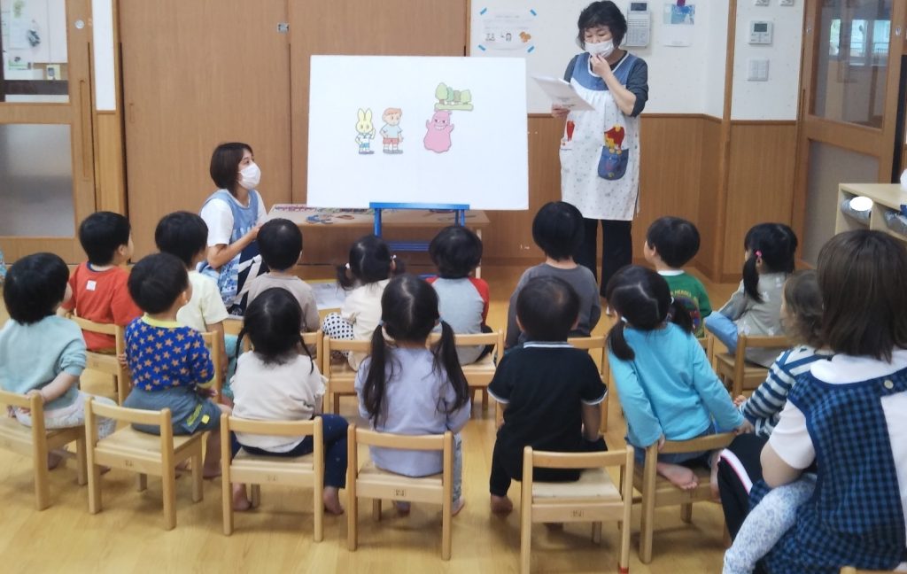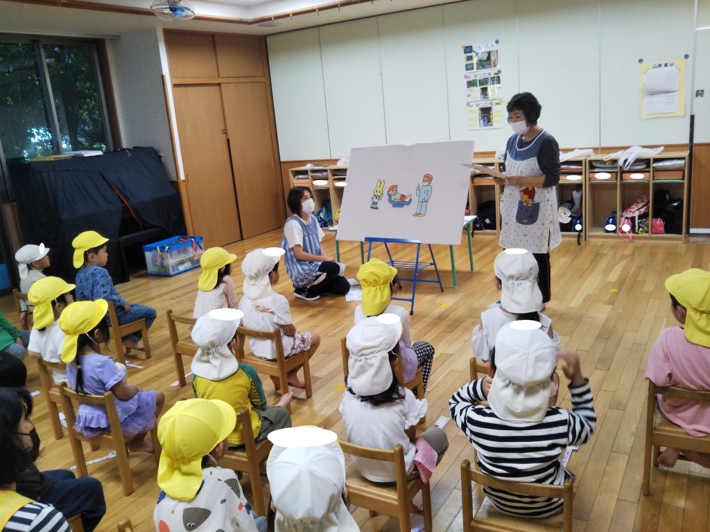 どのグループでも真剣な表情でパネルシアターや紙芝居を見たり積極的に保育教諭の質問に答えたりし、理解を深めようとする姿がありました。