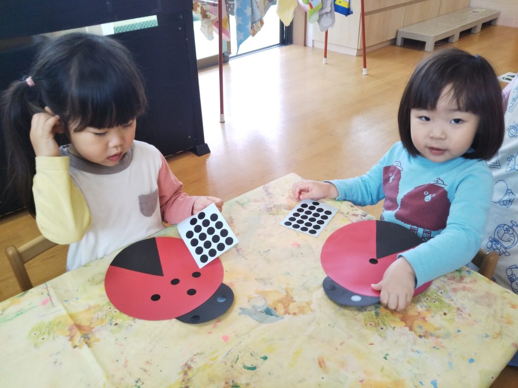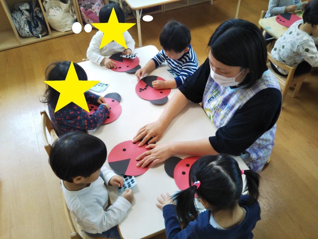 今回の製作では、散歩や園庭に出た際によく見かけた❝てんとう虫❞と❝だんごむし❞を作りました。