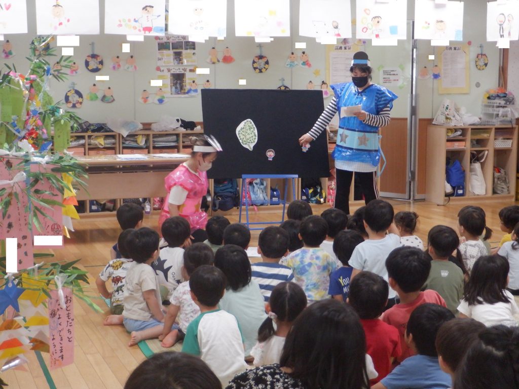 りすグループも一緒に参加をし、七夕の話を聞いたりパネルシアターを見たりしました。