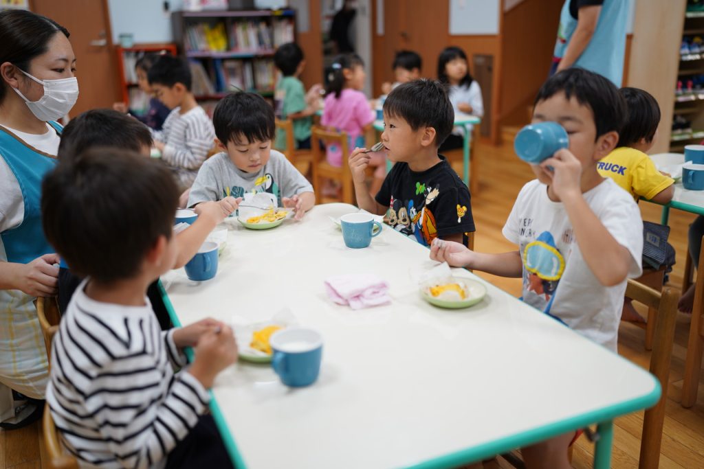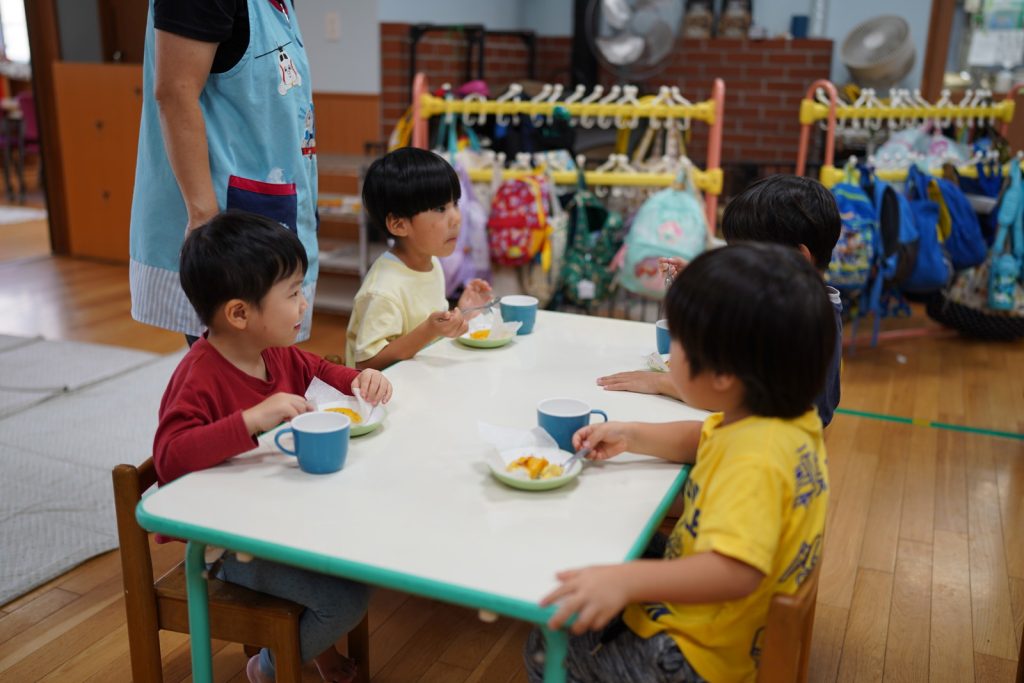 子供たちは、「今日のお弁当はおにぎりだよ」「りんごがいっぱい入ってるよ」など登園後から楽しみにしているようでした。