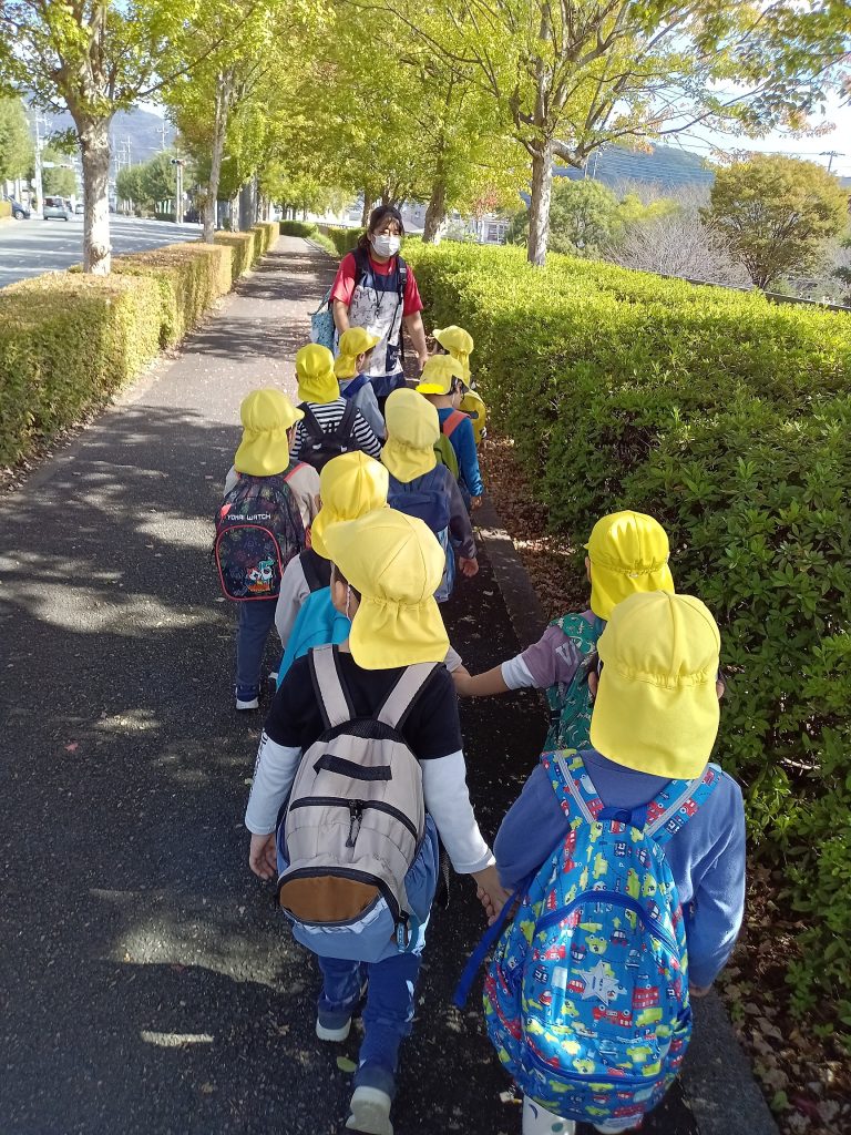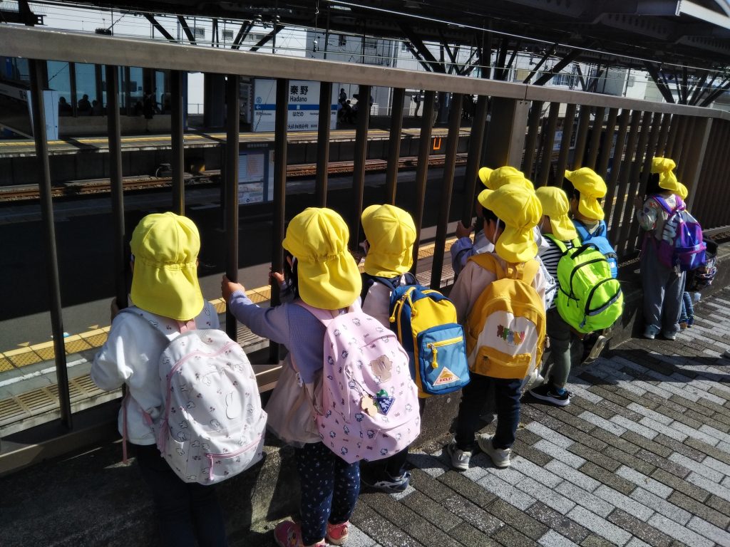 横断歩道を渡る時に左右を確認をしたり、運転をしている人が見えるようにしっかりと手を挙げたりするなど交通ルールを確認しながら駅まで散歩に行きました。