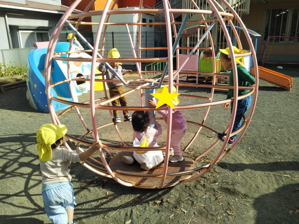 以前までは保育教諭が回していましたが、子供同士で楽しむ姿が見られるようになってきました☆