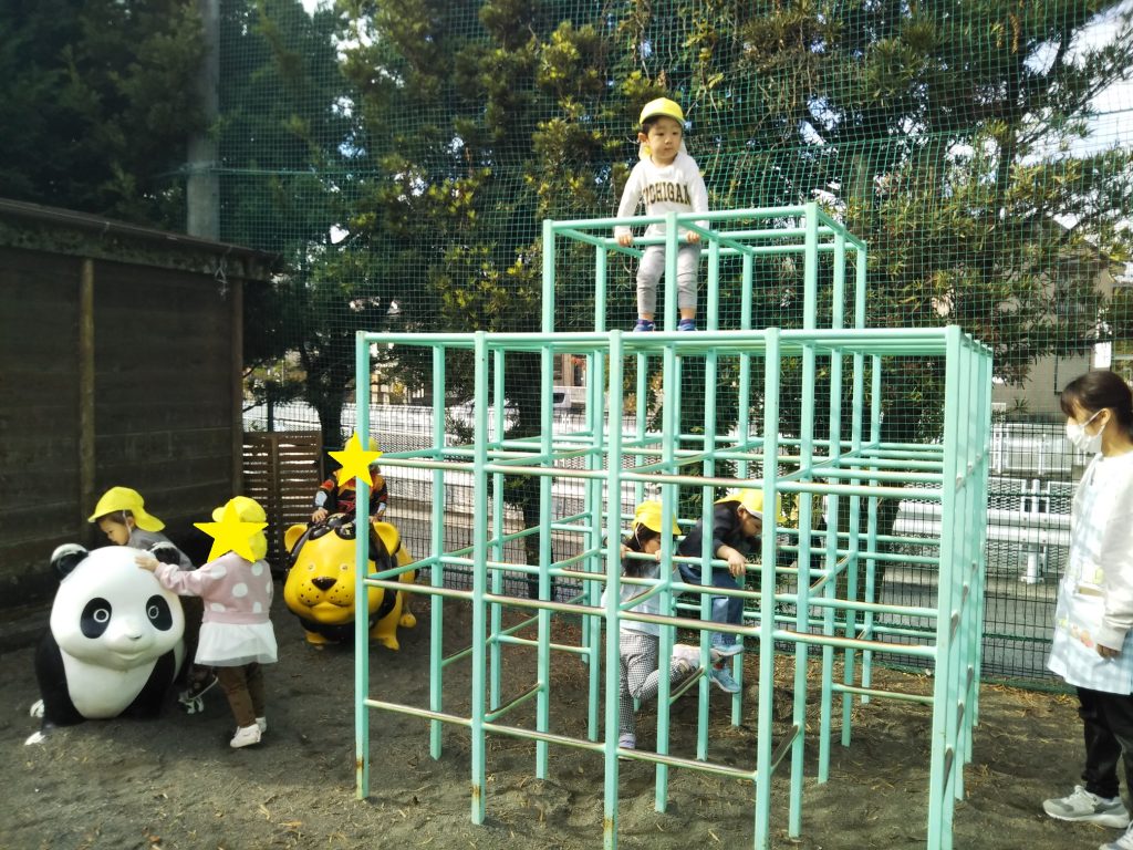 今日は園庭の遊具で遊ぶ様子を紹介します。