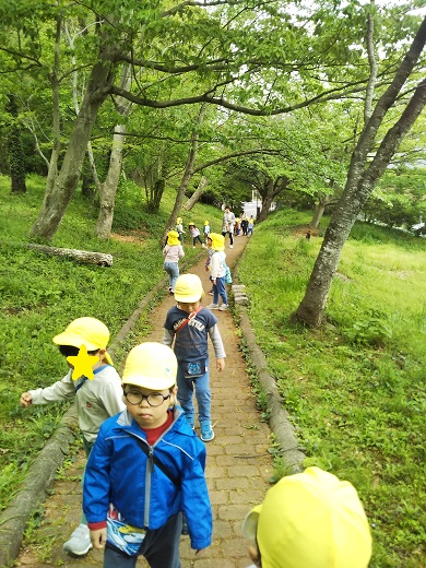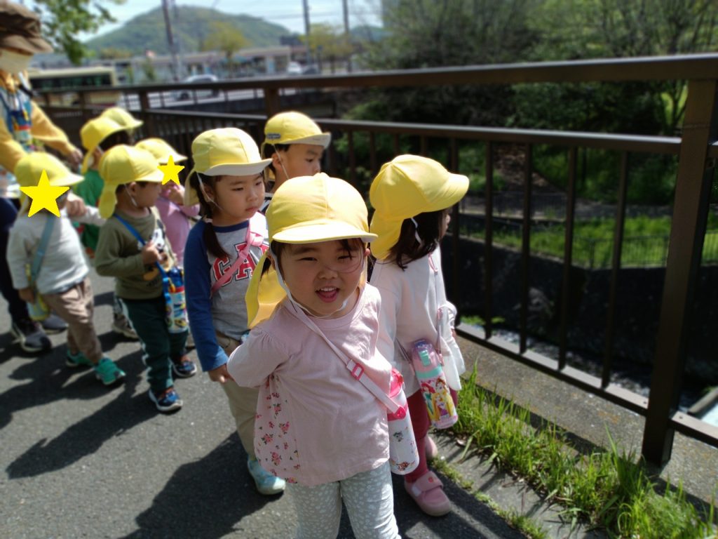 今まで散歩の日は運悪く雨・・・。初めて園外に出る日が❝お弁当の日❞となりました。