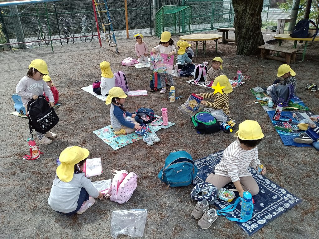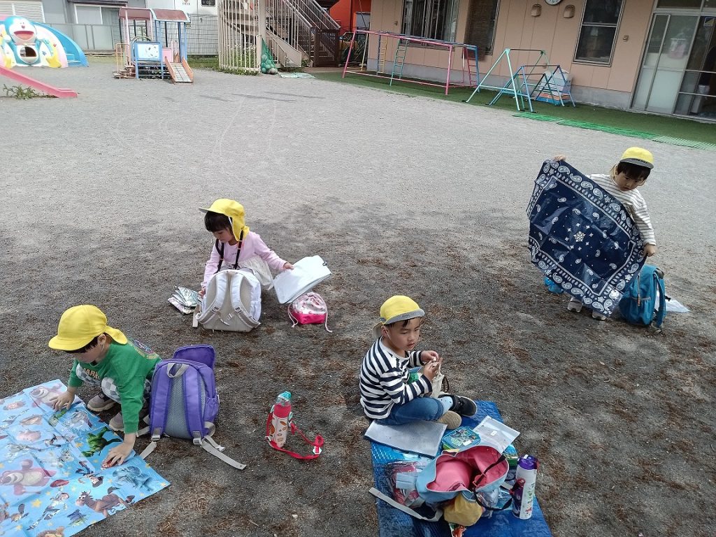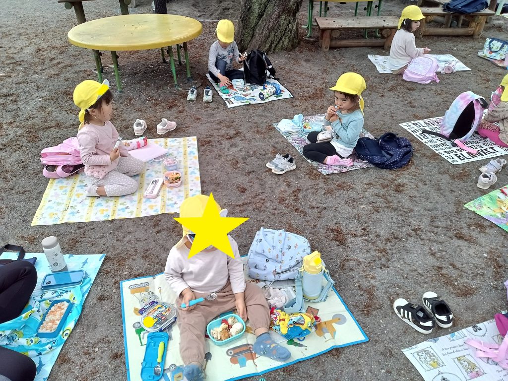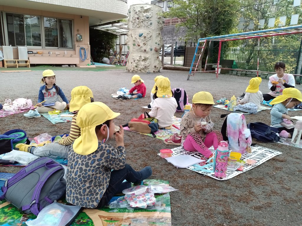 お弁当は保育園の園庭で食べました!シートを広げたり、お弁当を出したり・・・自分で身支度を頑張っていました(*^_^*)