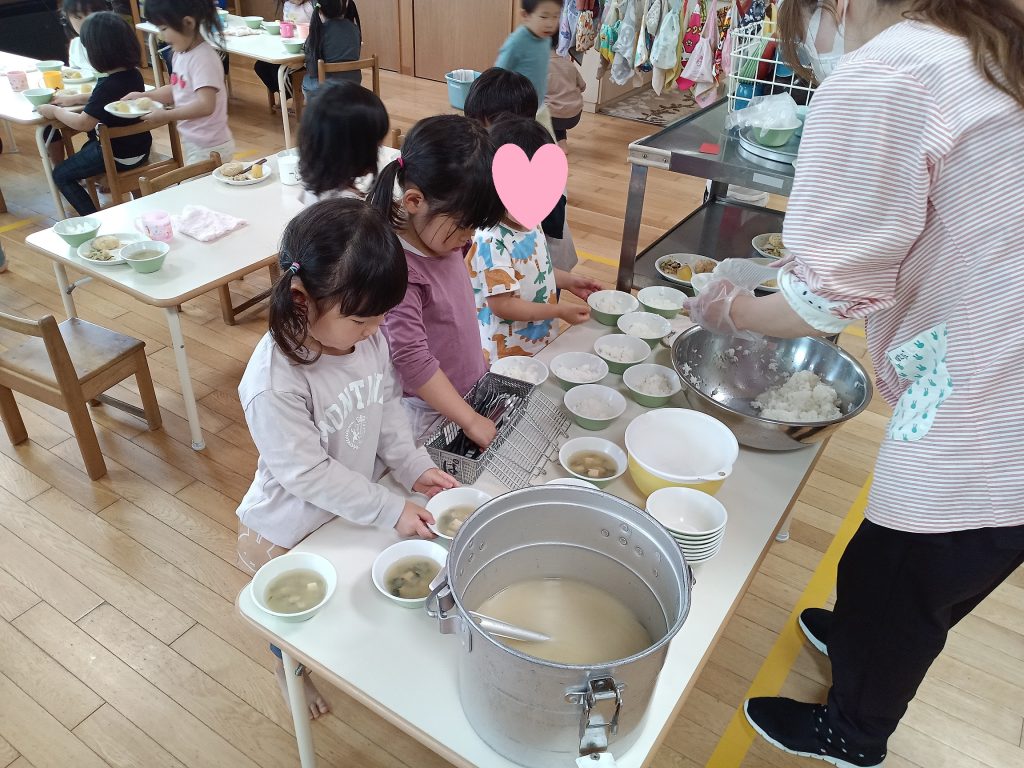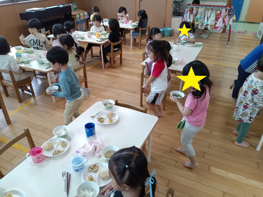 苦手な食材があり手が止まってしまっている子がいると、「美味しいから食べてごらん」と声を掛け合う姿はとても微笑ましいです☆