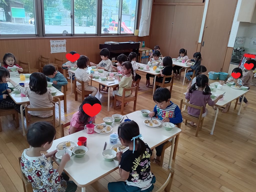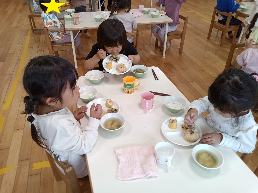 3歳児ぱんだグループの食事の様子をお伝えします(*^_^*)