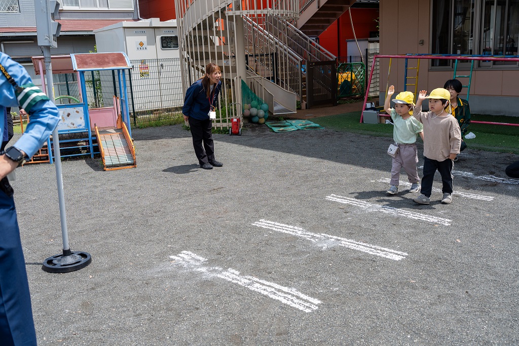 ❝横断歩道を渡る際は手を挙げて左右を確認後、渡っている間も車が来ないか確認しながら歩く❞ことを改めて教えて頂き、自分で確認する重要性を感じることができました。