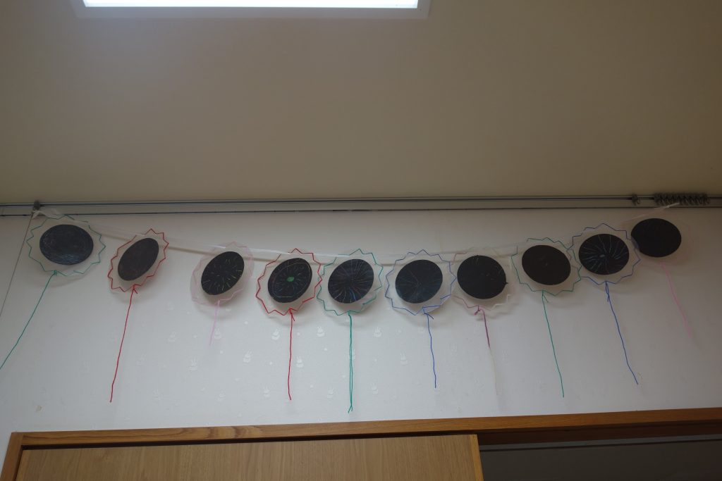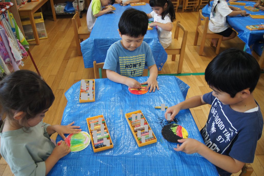 夏休みに入る前、子供たちと削り絵で花火を作りました