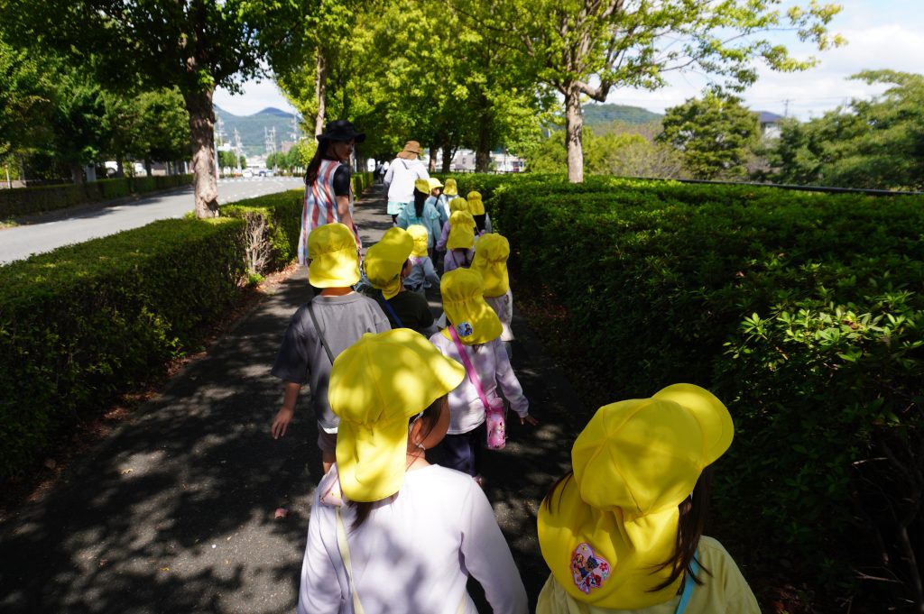 今年度のひつじグループでお散歩するのは今日が初めて。園の周りをお散歩してから、目的地の尾尻公園へ。