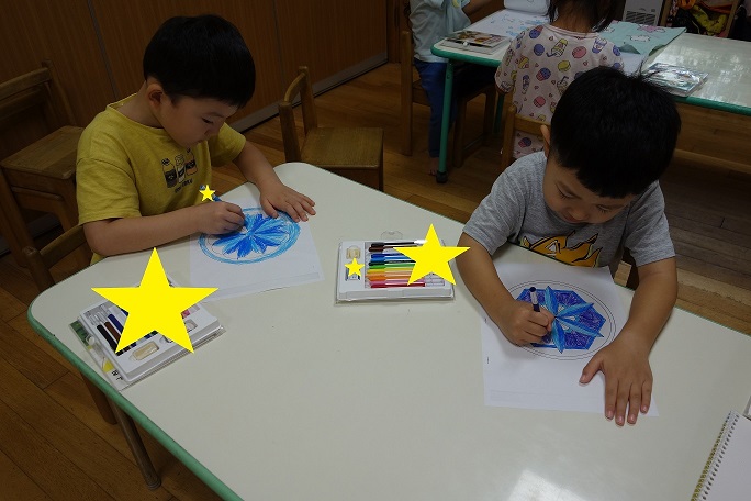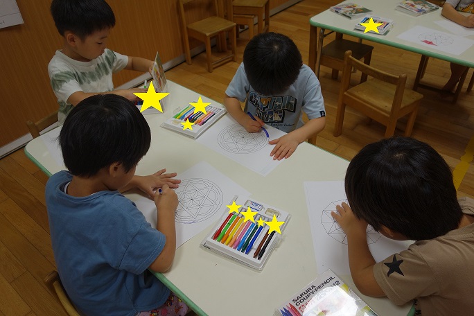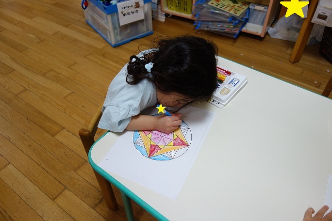 くまグループ(4歳児)は、曼荼羅塗り絵にチャレンジしました!