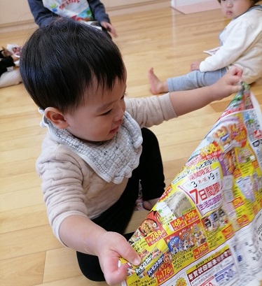 新聞紙遊びをしたよ♪