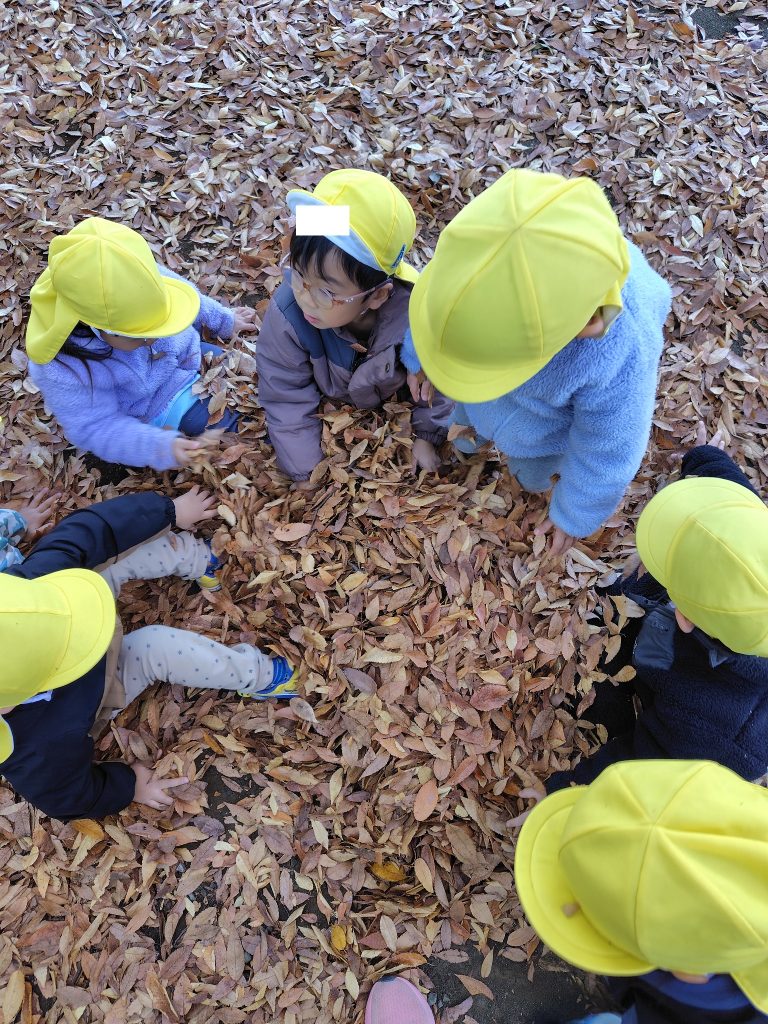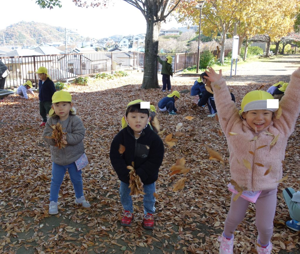 友だちと一緒に落ち葉を集めたり、集めた落ち葉を舞い上げたりしていましたよ。