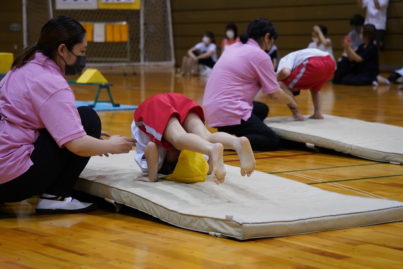 練習してきた成果を発揮し、緊張しながらも一つひとつを丁寧に取り組み、勝敗のあるゲームでは友だちと協力したり喜び合ったりする姿が見られました。