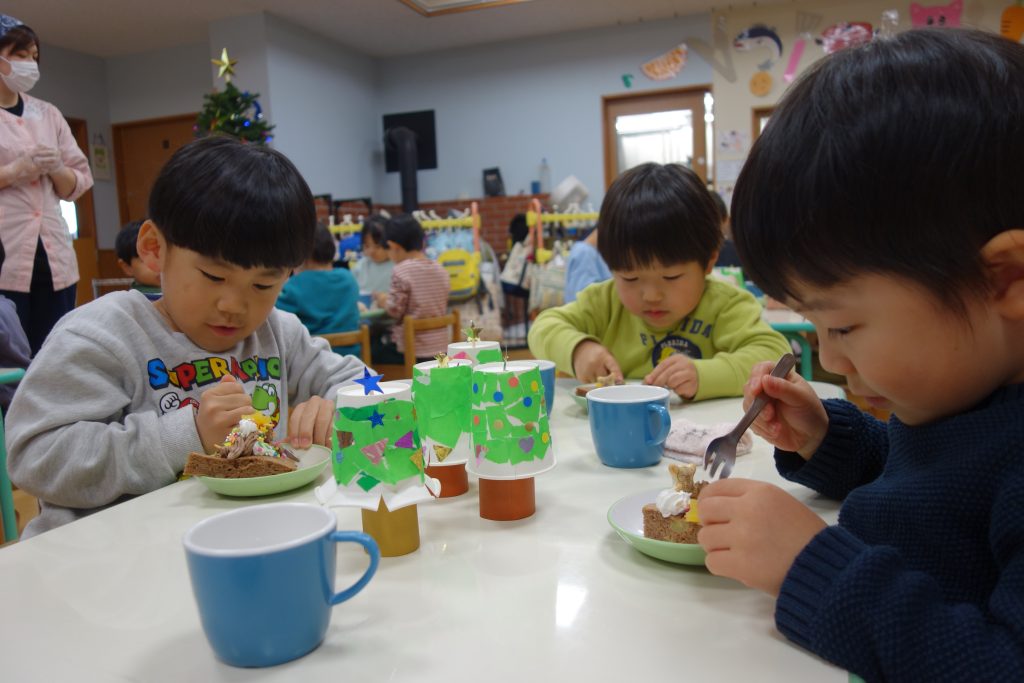 自分たちで飾り付けしたケーキの味は格別だね(^^)♡