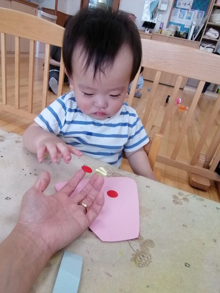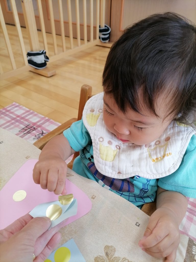 「ぺたぺた」と楽しそうに貼っていましたよ♪