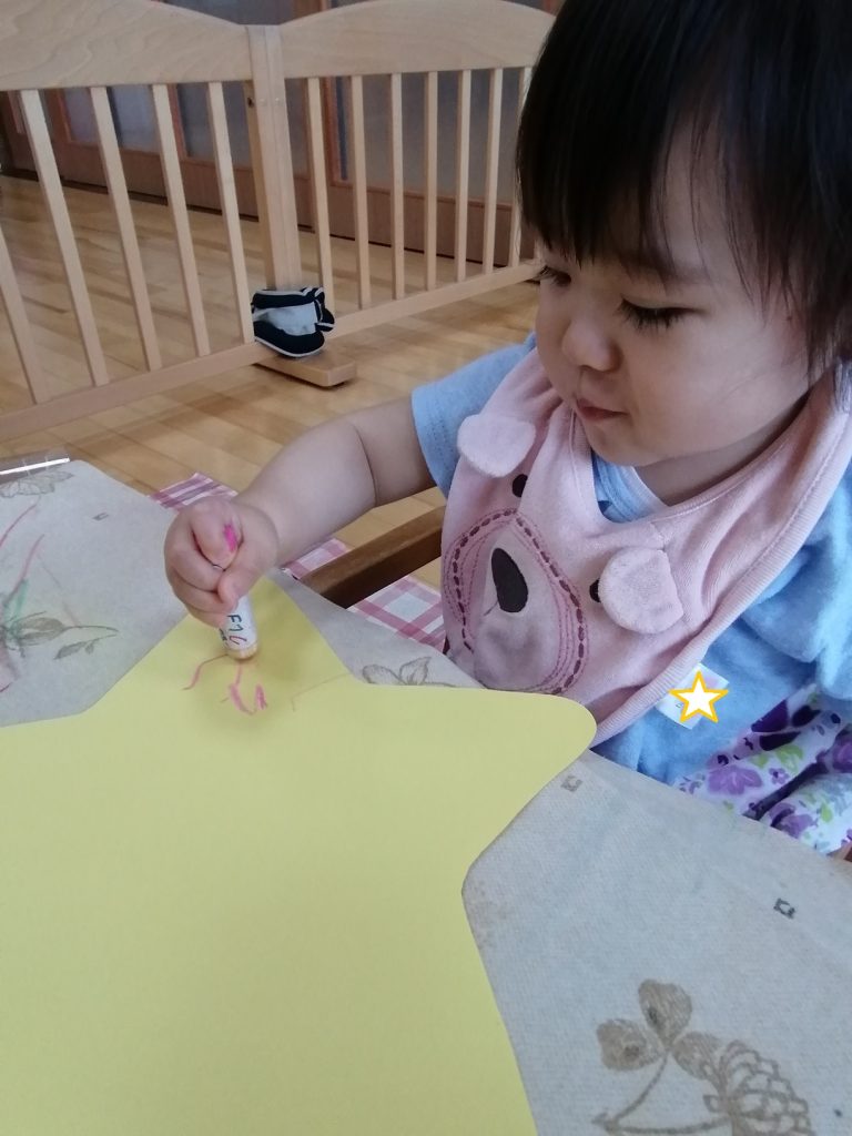 星型の画用紙にクレヨンでなぐり描きを行ないました!!