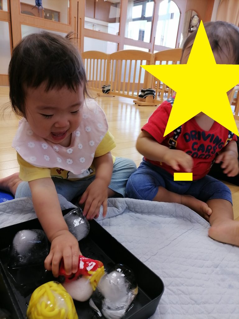 保育教諭と「冷たいね」などとやりとりを楽しみ、