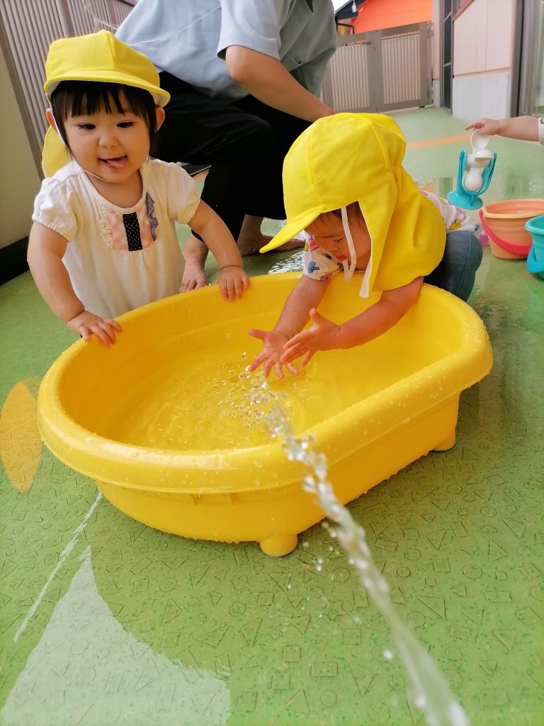 ひよこグループです。今回は、水遊びの様子をお伝えします(*^_^*)