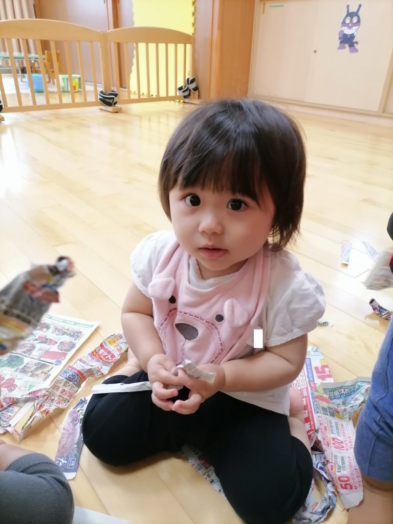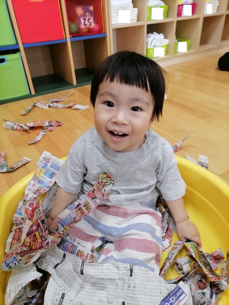 みんなで順番に新聞お風呂に入り、とても可愛い笑顔をたくさんみることができました♪