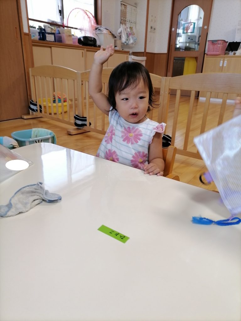 名前を呼ばれると「はーい!」と手を挙げたり返事をしたりする子が増えてきました(^^)/