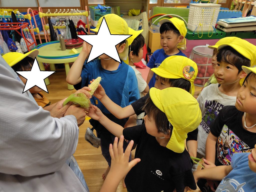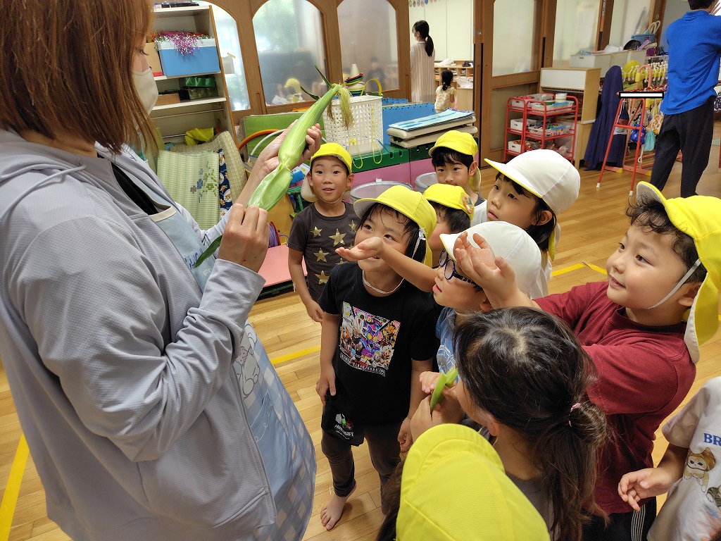 とうもろこしの皮や髭も触り子供たちは大興奮でした。
