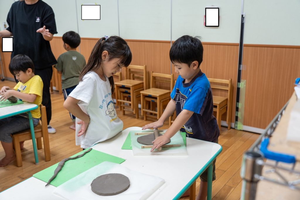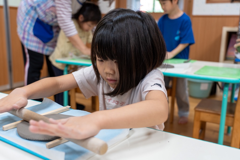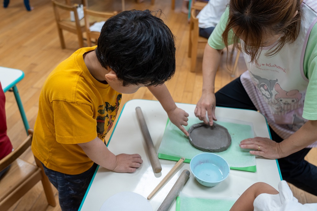 粘土遊びから始め、捏ねるたりお皿の形にしたりする練習を行っていたため、