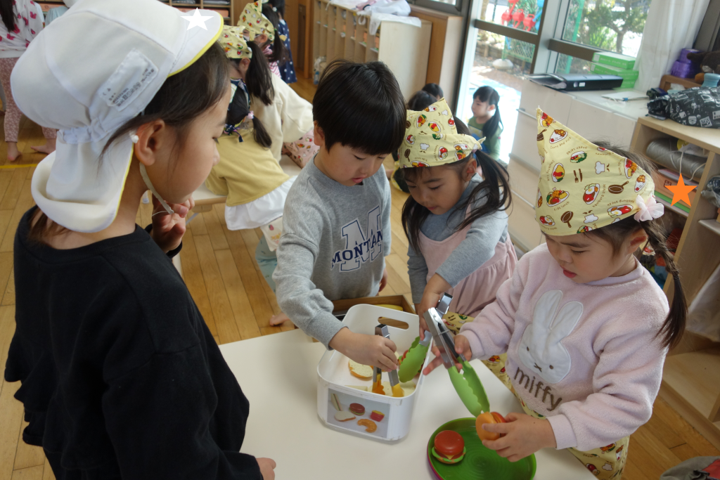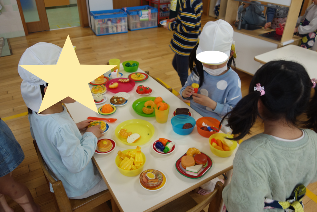 「いらっしゃいませ」「いかがですか?」とお店屋さんになりきり、きりんさんをもてなしました(*^^*)