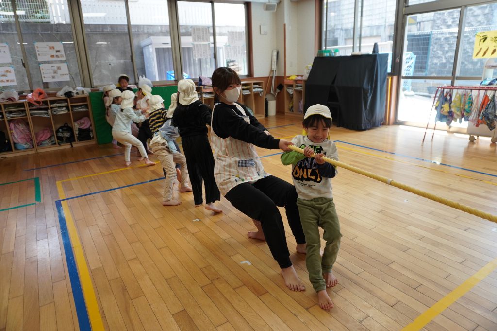 みんな一生懸命綱を引いていました!