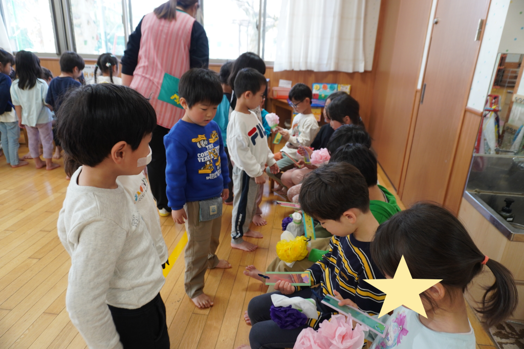 3月25日に卒園式を行いました。きりんグループとして最後の行事のため、子供たちは普段よりも緊張感を持ち本番に挑みました。