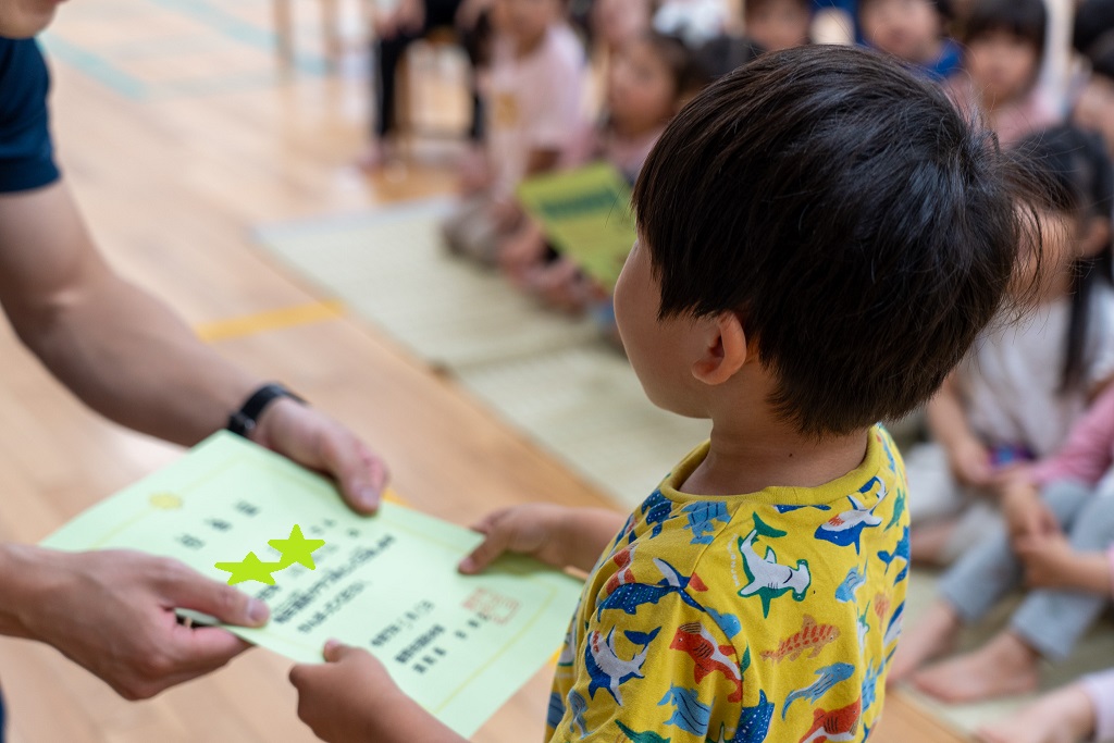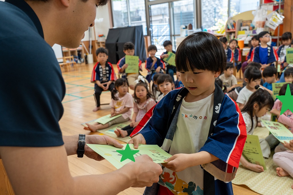 最後は保育教諭にスタンプを押してもらい