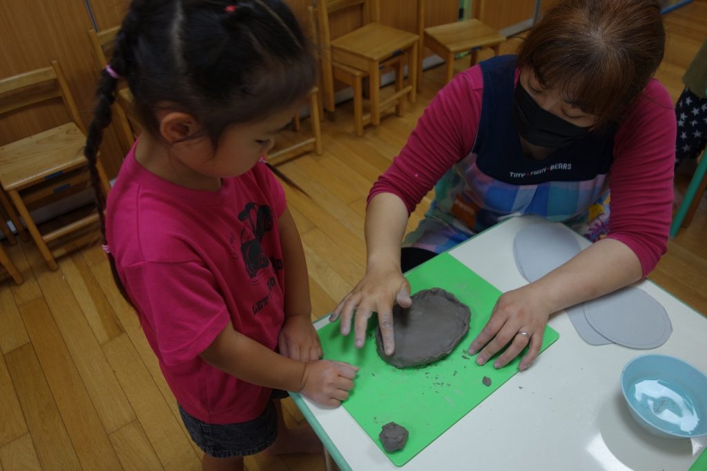 今回は陶芸でお皿を作るために、土をこねたり、実際に成形したりする練習を行ないました。