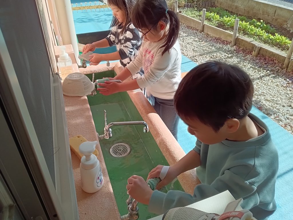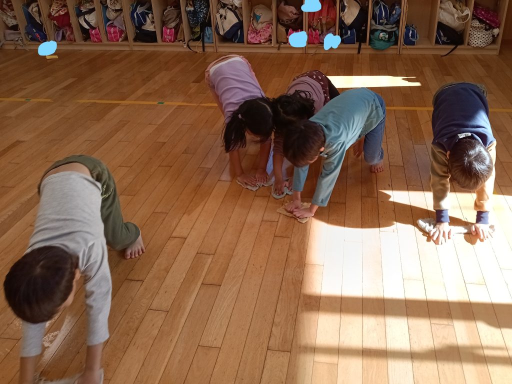 「ここも汚れてる!」「バケツの色が全然違う!」「ここも綺麗にしよう!」と友だちと声を掛け合いながら意欲的に大掃除を行なうことができました。