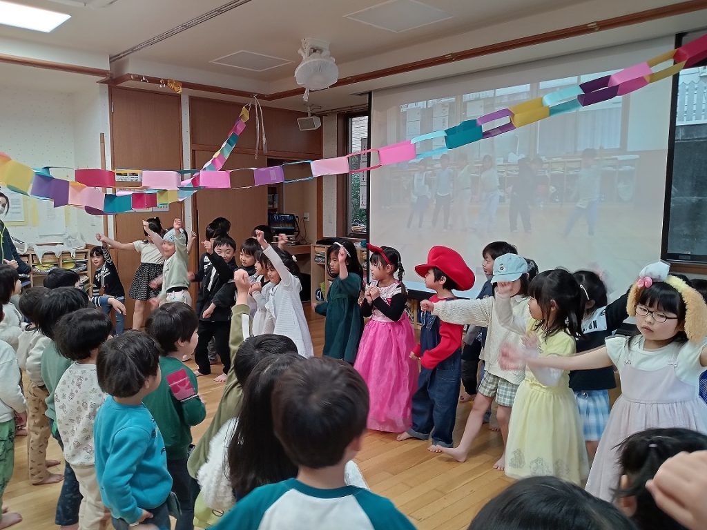 ぱんだグループ(3歳児)、くまグループ(4歳児)、きりんグループ(5歳児)合同で、お別れ会を行ないました(^▽^)/