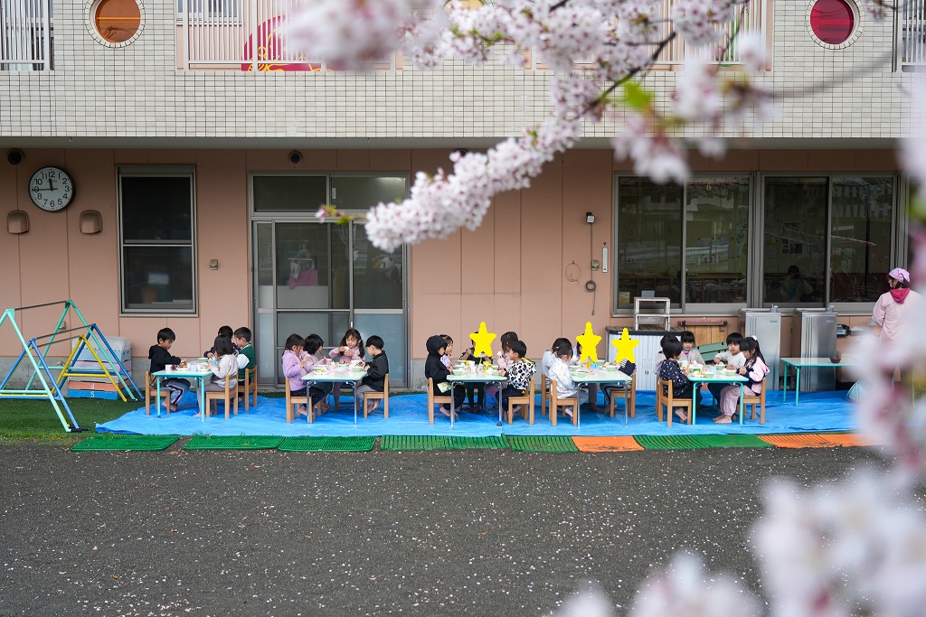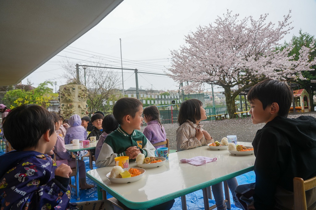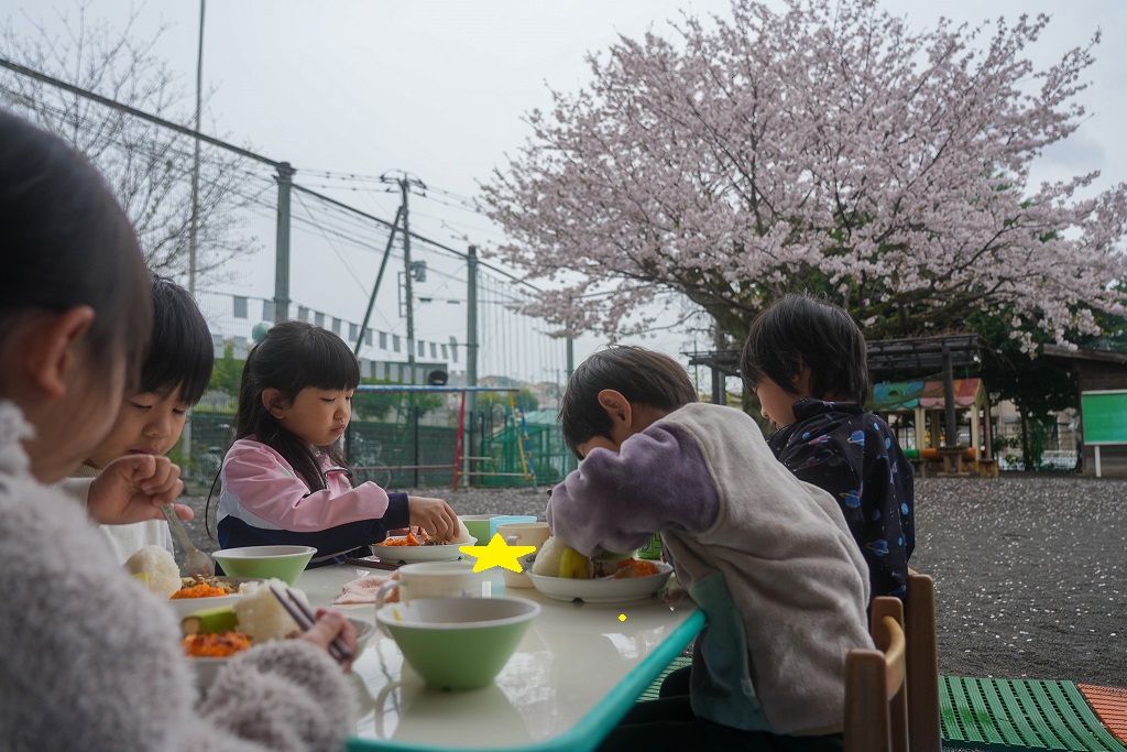 先日、お花見しながら給食を食べました☆