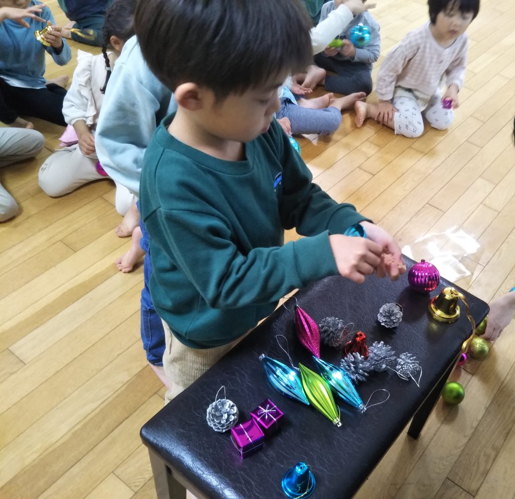 くまグループ(4歳児)では、先日クリスマスツリーの装飾を行ないました。