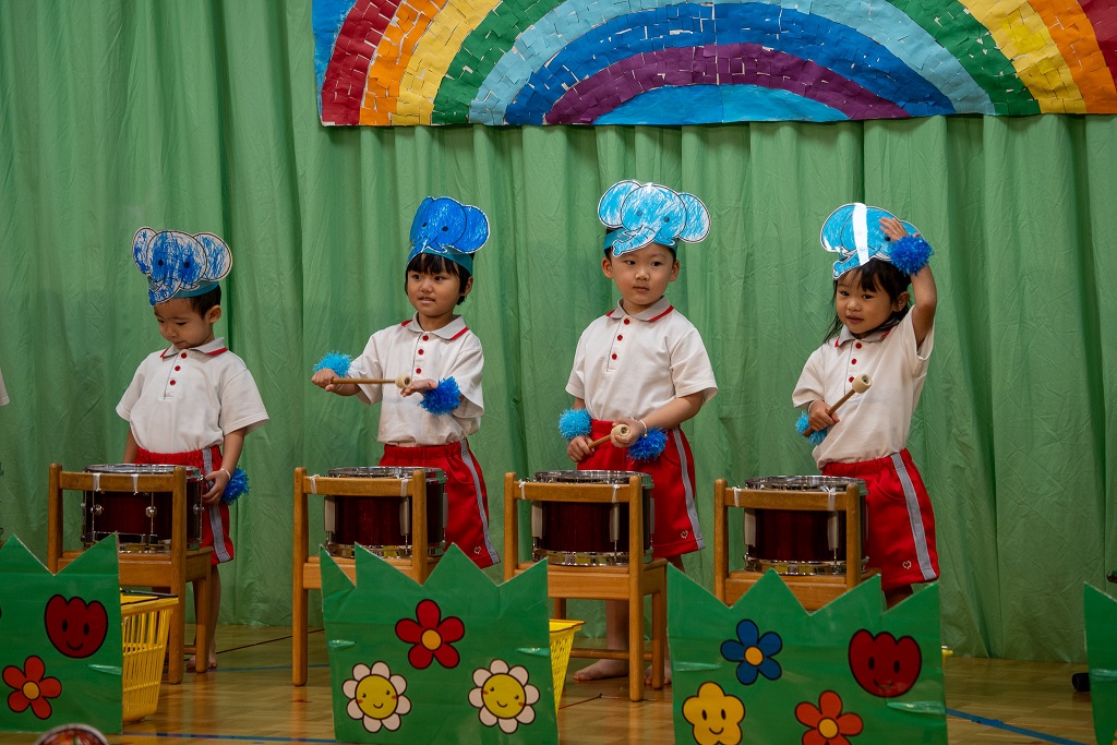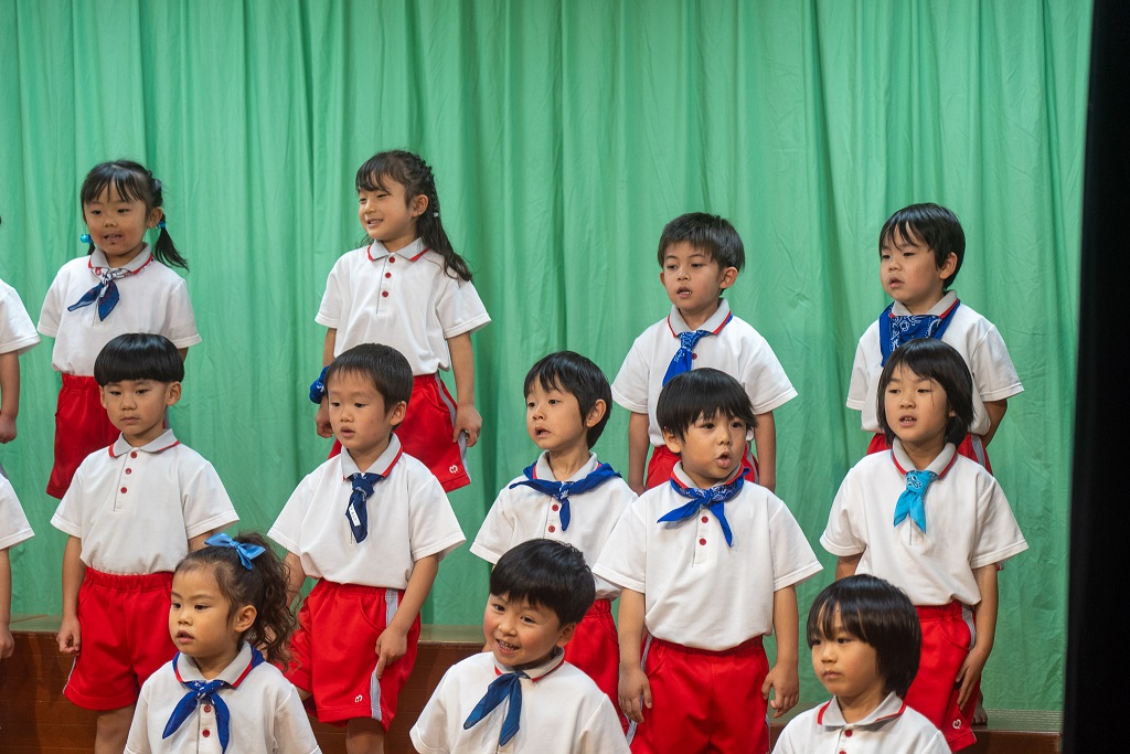 くまグループは力強い楽器の演奏と、大きな声で歌を歌いました。真剣な表情で入場していましたが、いざ始まると笑顔も見られましたよ!