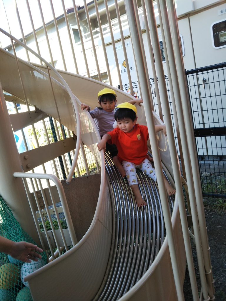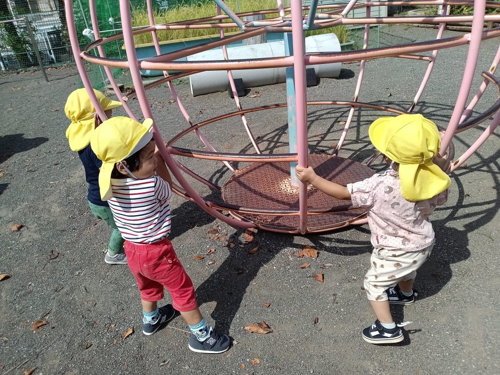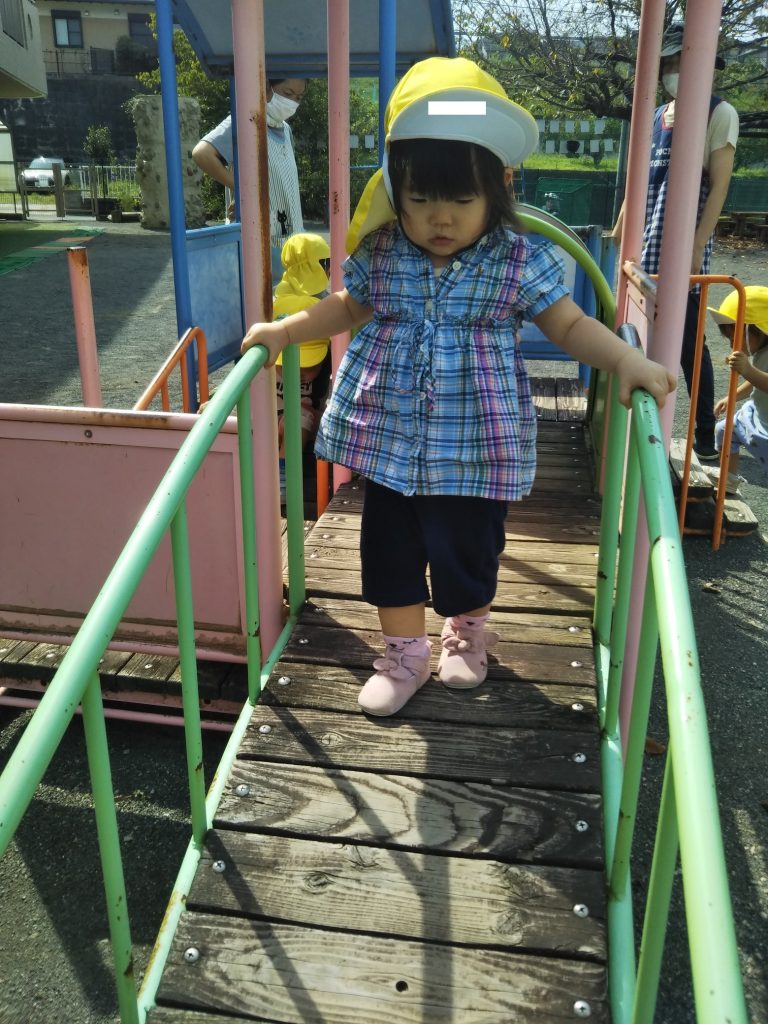 園庭に出ると好きな遊具を見つけて繰り返し遊んでいます。