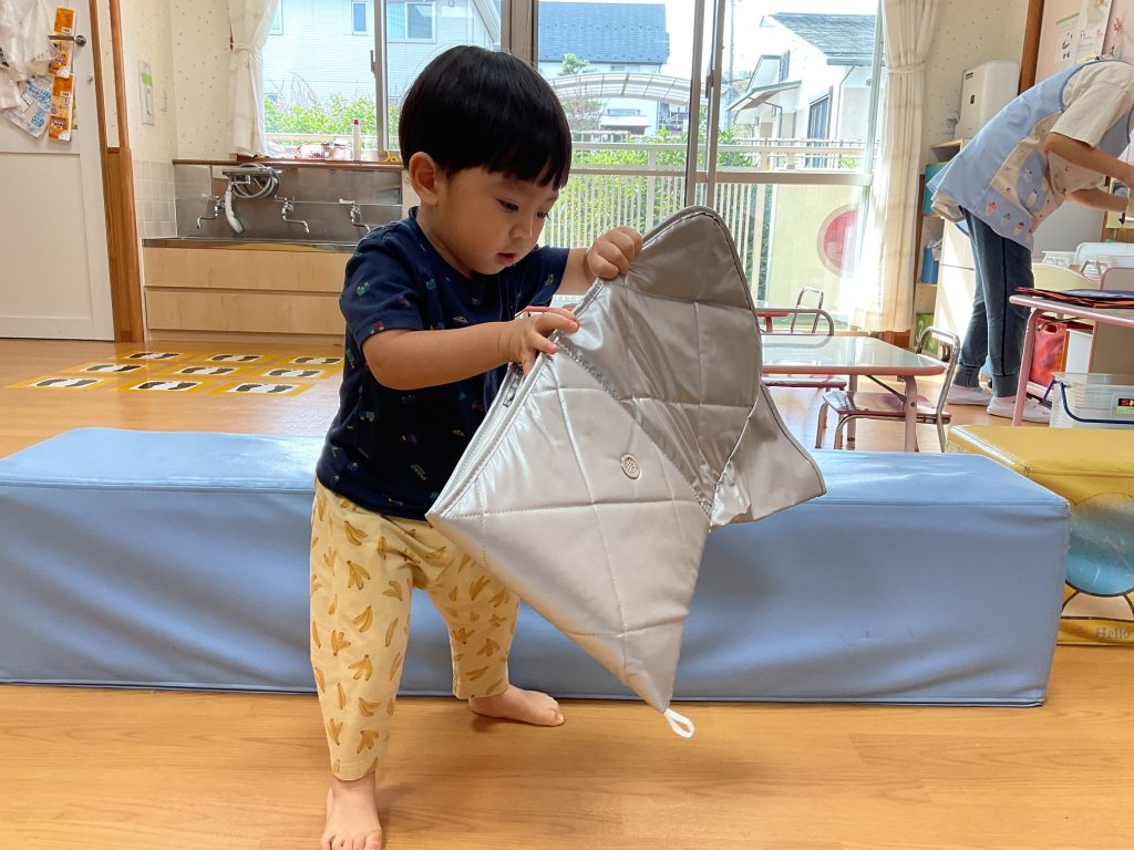 自分で帽子を被ったり靴下や靴を自分で履こうと頑張っています!