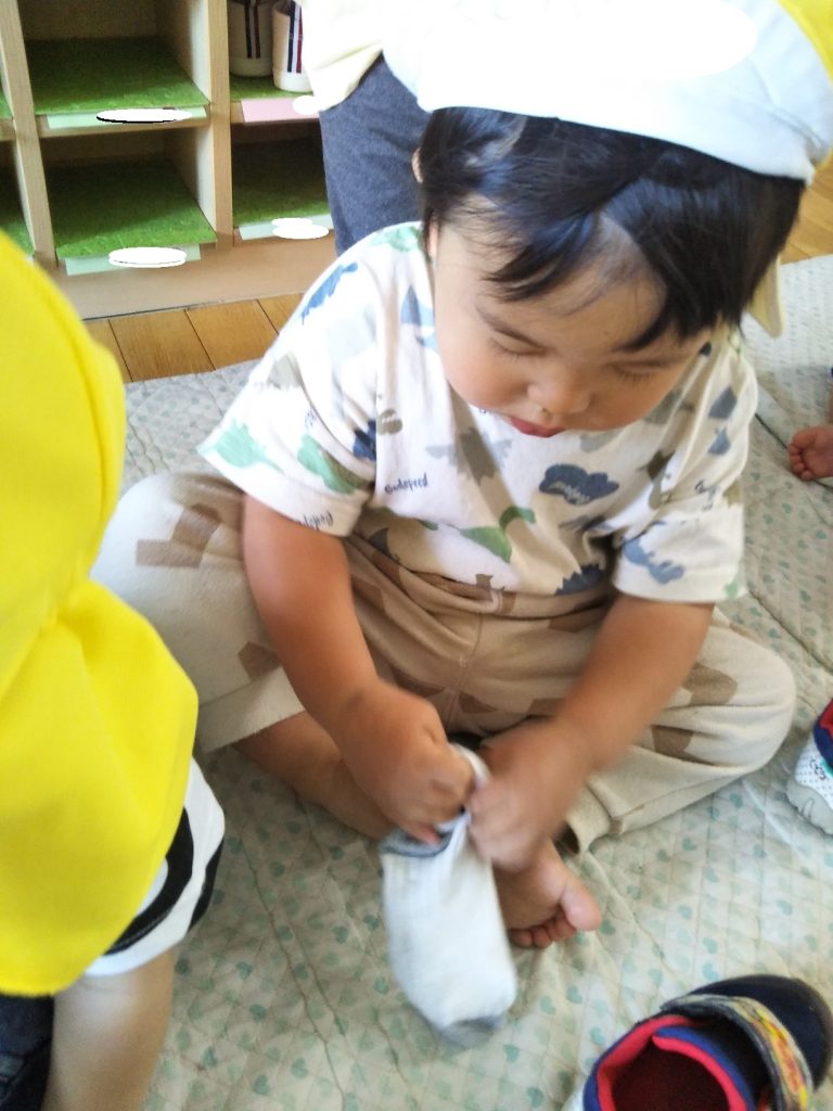 靴や靴下などもまずは自分でやってみよう!と頑張っています。