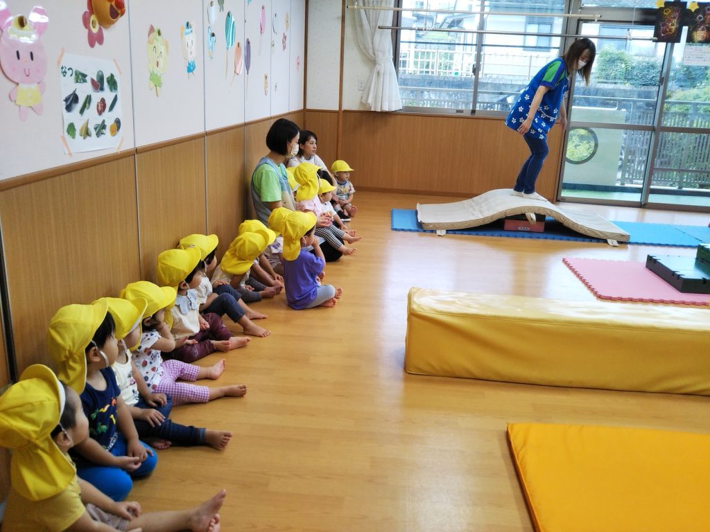 始まる前に保育教諭の話を聞き、子供たちは興味津々!!