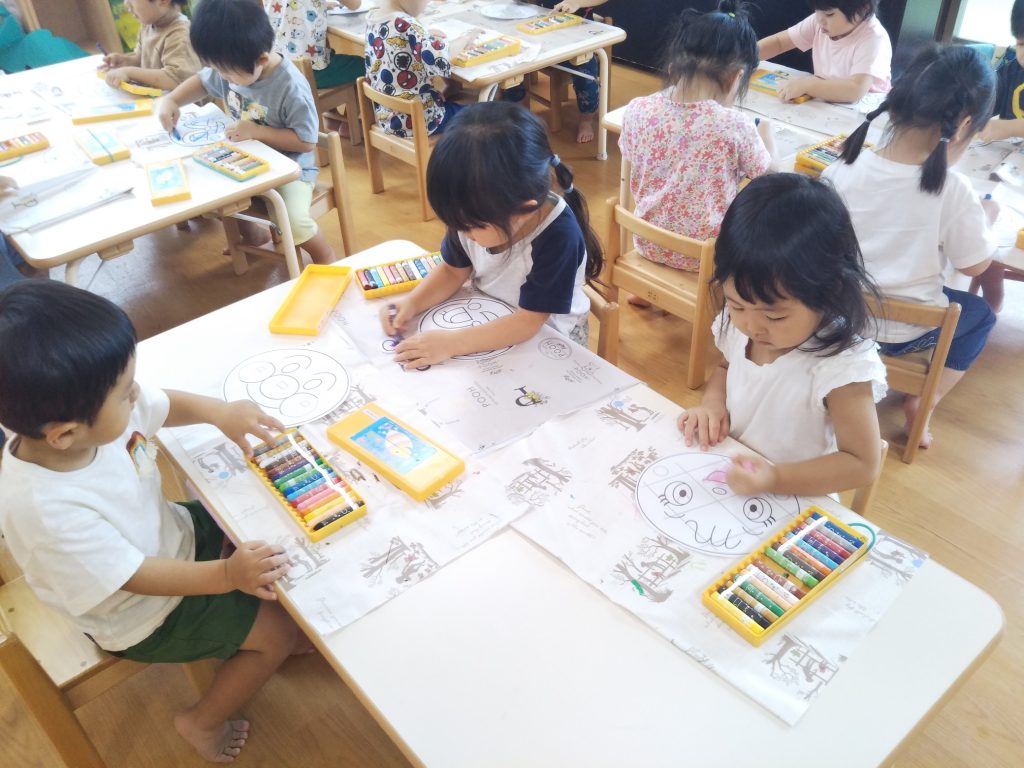 まだ難しい子供の姿もありますが保育教諭が手を添えながら取り組んでいます