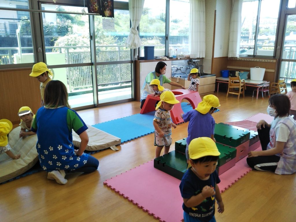 やはり高さがあることから苦手意識や怖がる子供の姿もありますが、繰り返し挑戦したり保育教諭に援助されたりすることで自分で挑戦しようとする姿が増えてきました。