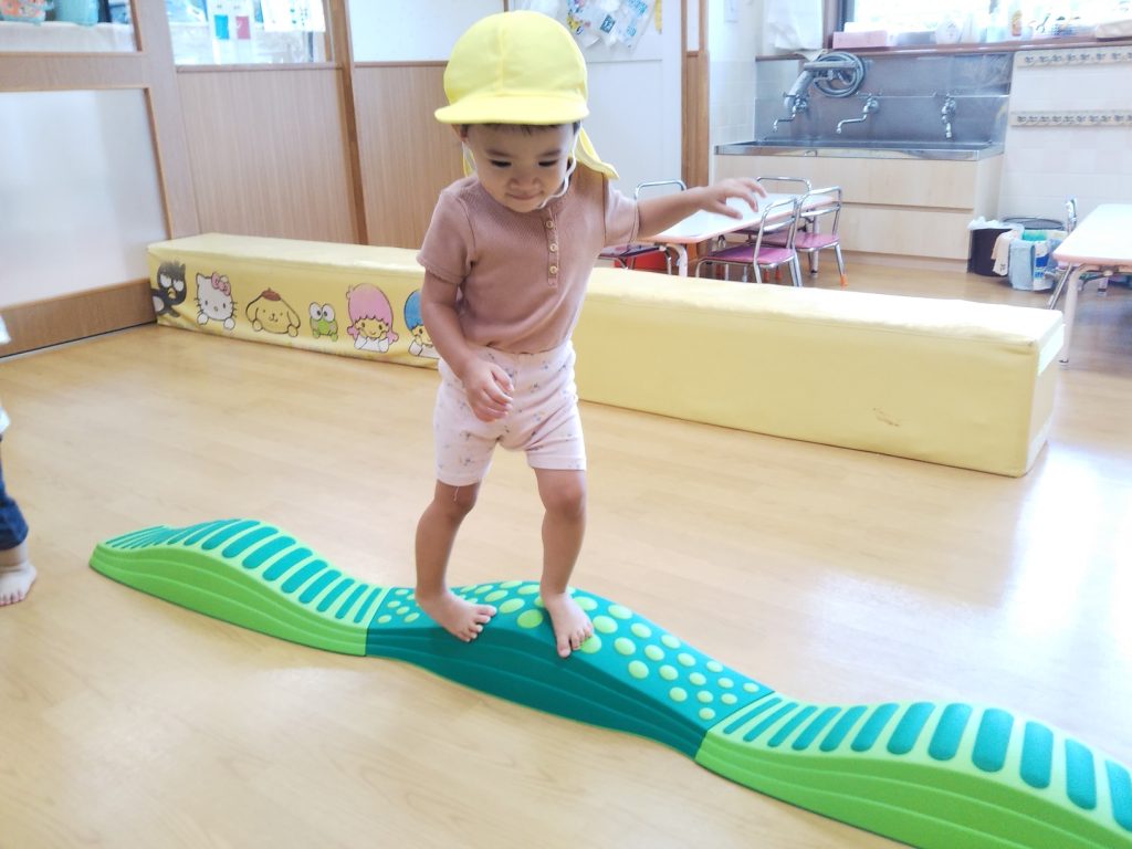 少しボコボコしているので感触を楽しみながら自分でバランスを取りながら立ったり歩いたりしています。