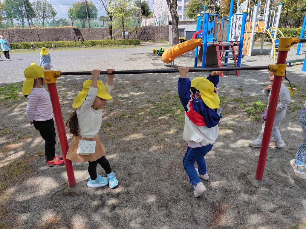 公園では、鉄棒や鬼ごっこ、ブランコなどを使用して遊びました。