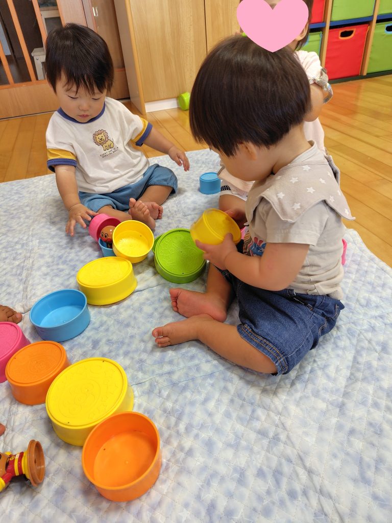 また、保育教諭の手本を真似て上手にカップや積み木を積み上げることができました(^_-)-☆
